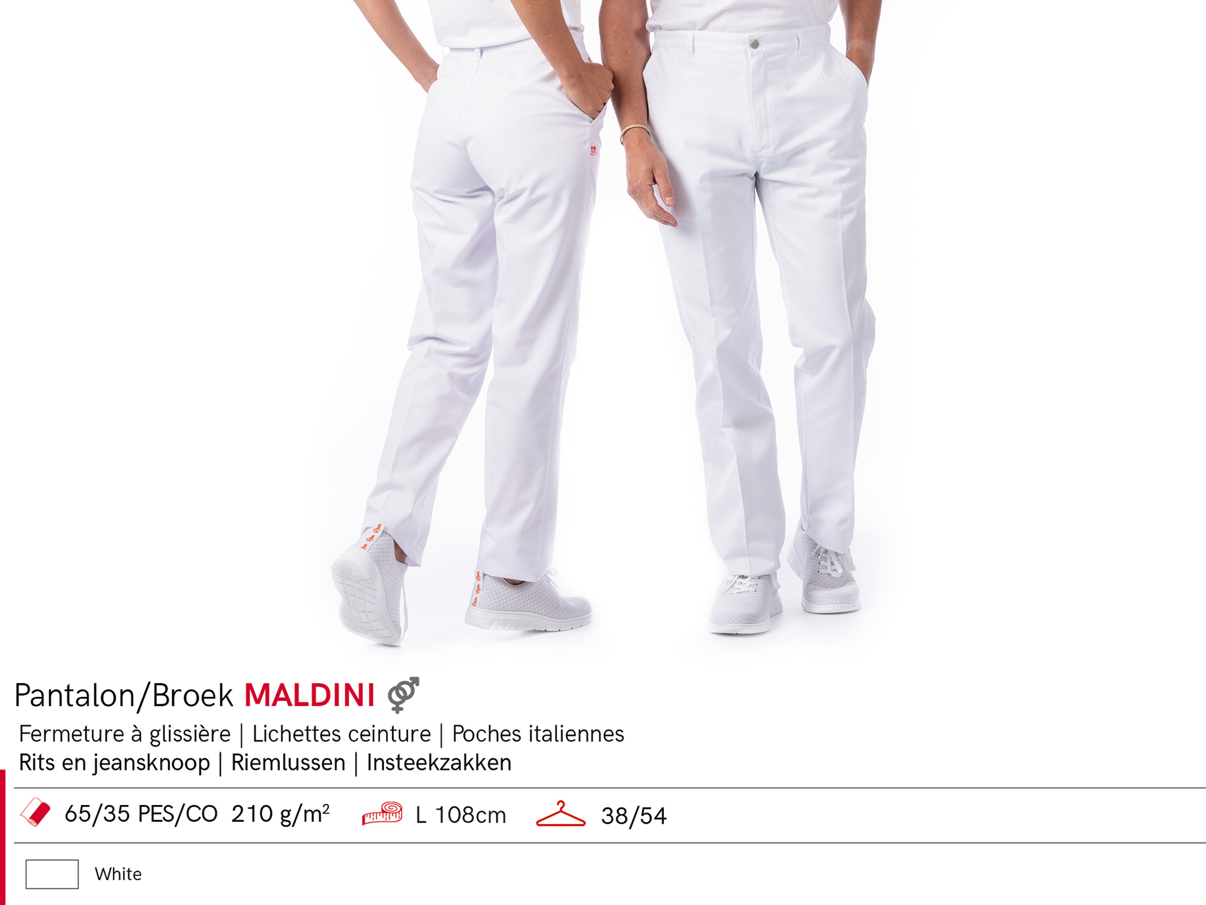 Les poches italiennes ajoutent une touche fonctionnelle à ce pantalon, offrant un espace de rangement pratique pour vos essentiels. Fabriqué en 65/35 PES/CO (210g/m²), il assure un confort optimal pendant toute la journée.