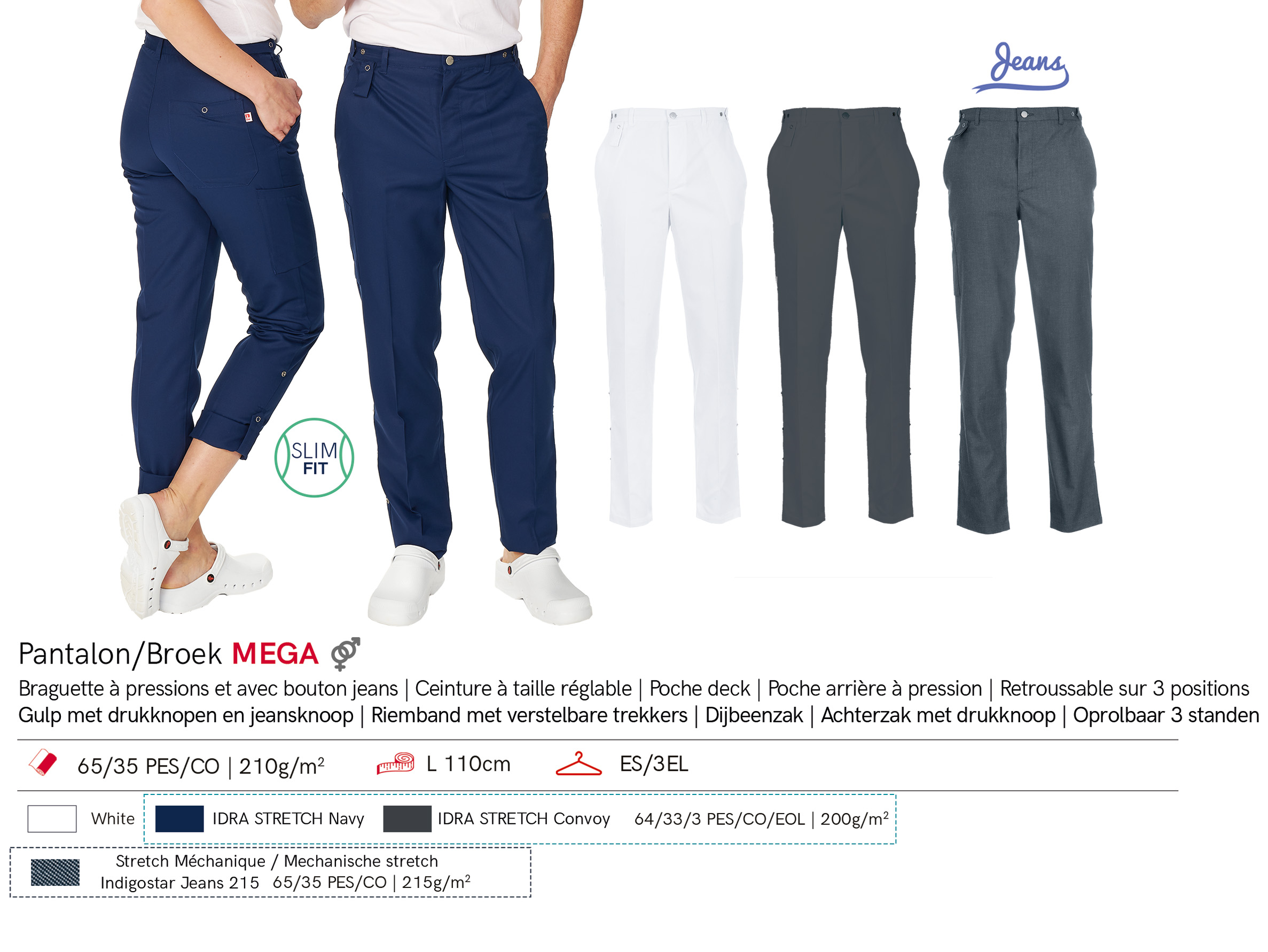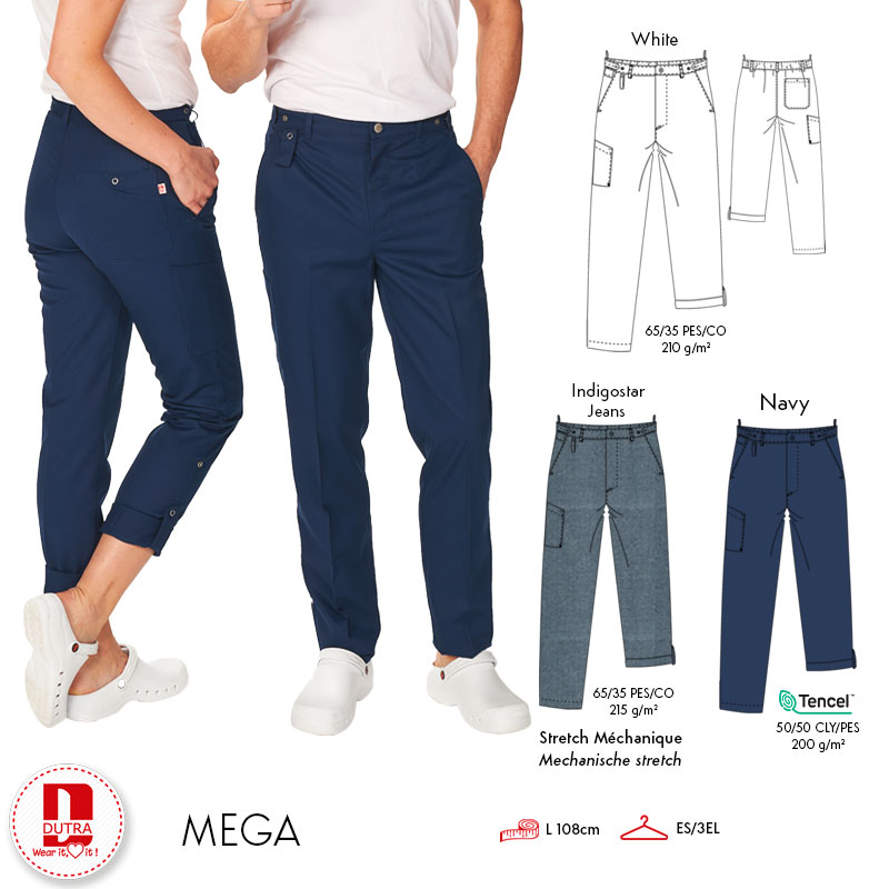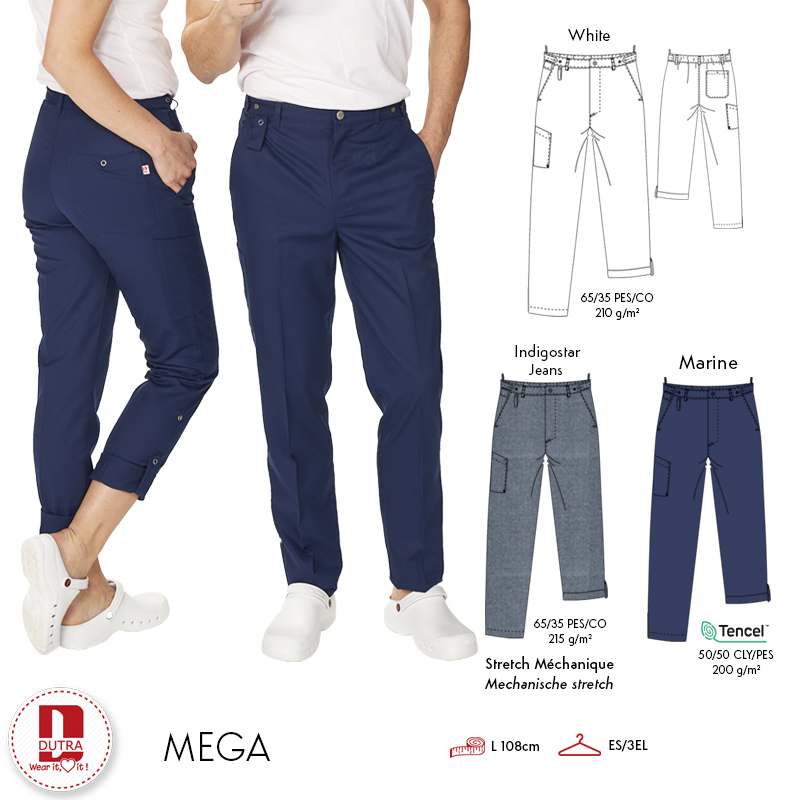 Découvrez le pantalon médical MEGA est une solution polyvalente pour les professionnels exigeants. Avec sa taille ajustable et ses jambes retroussables, ce pantalon offre confort et adaptabilité. La braguette à pressions et la ceinture à taille réglable avec bouton jeans ajoutent une touche pratique et esthétique. Les poches deck et la poche arrière à pression offrent fonctionnalité et style. Fabriqué en 65/35 PES/CO (210g/m²), stretch mécanique (215g/m²), et 50/50 CLY PES – TENCEL (200g/m²) en Marine, ce pantalon allie confort et durabilité. Disponible en 4 couleurs, choisissez votre style. Tailles de ES à 3EL.