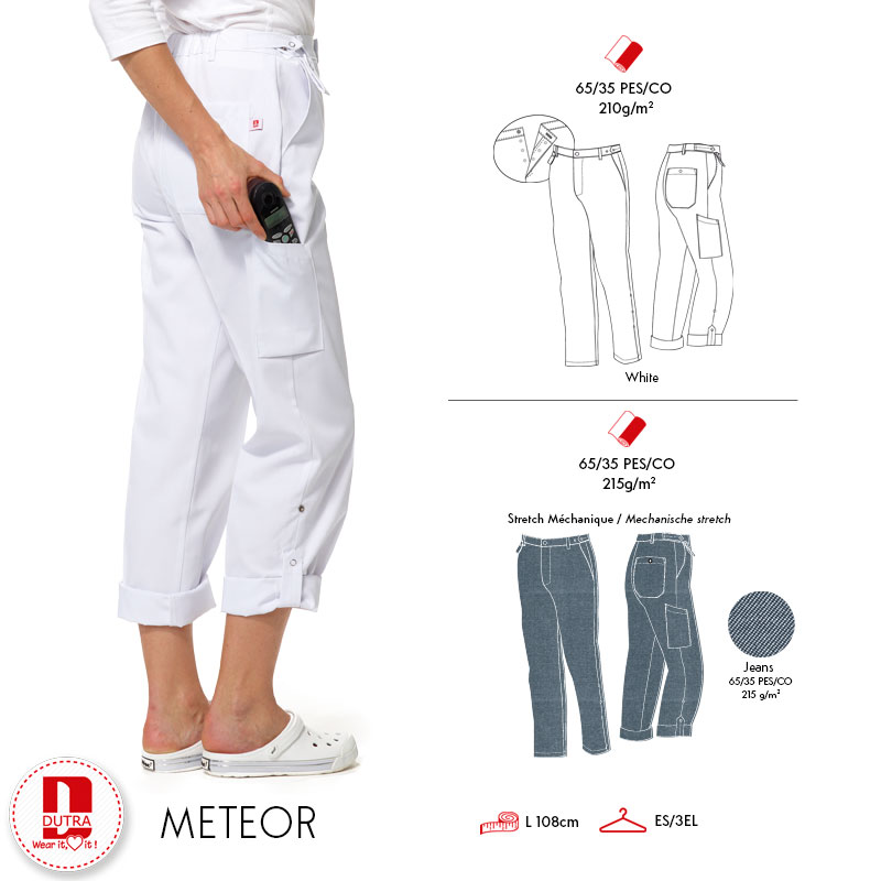 Pantalon médical polyvalent avec taille ajustable et jambes retroussables