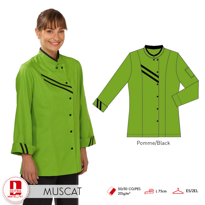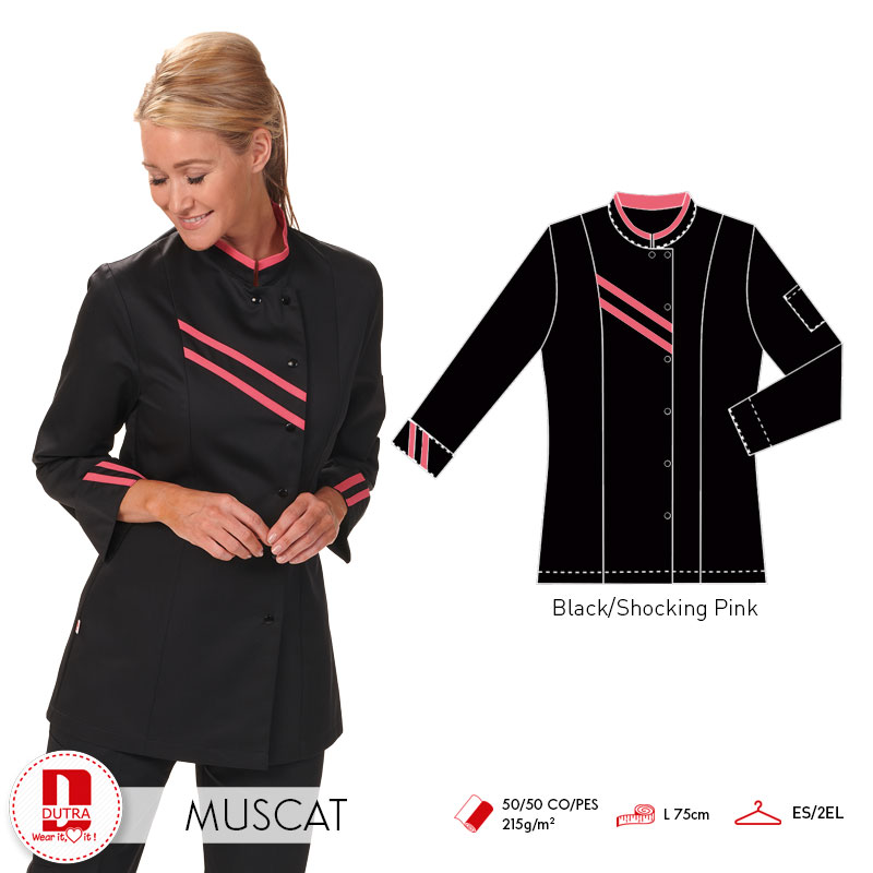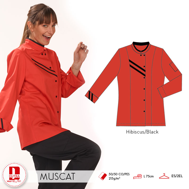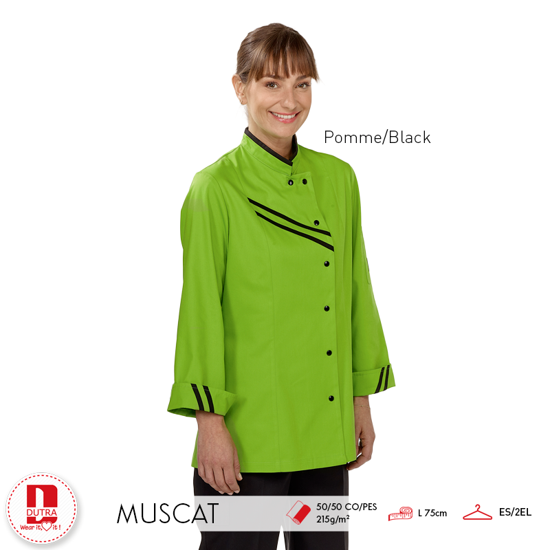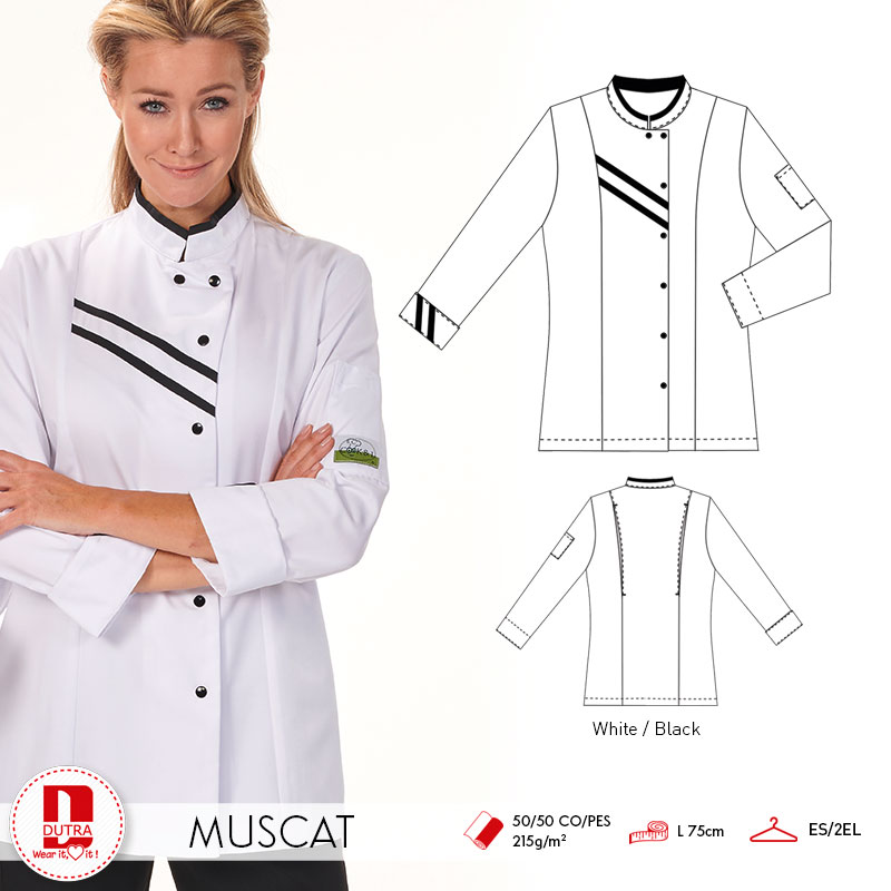 La veste de cuisine pour dame associe élégance et fonctionnalité, répondant aux besoins des professionnelles de la gastronomie. Les manches longues et les garnitures contrastées ajoutent une touche de style.