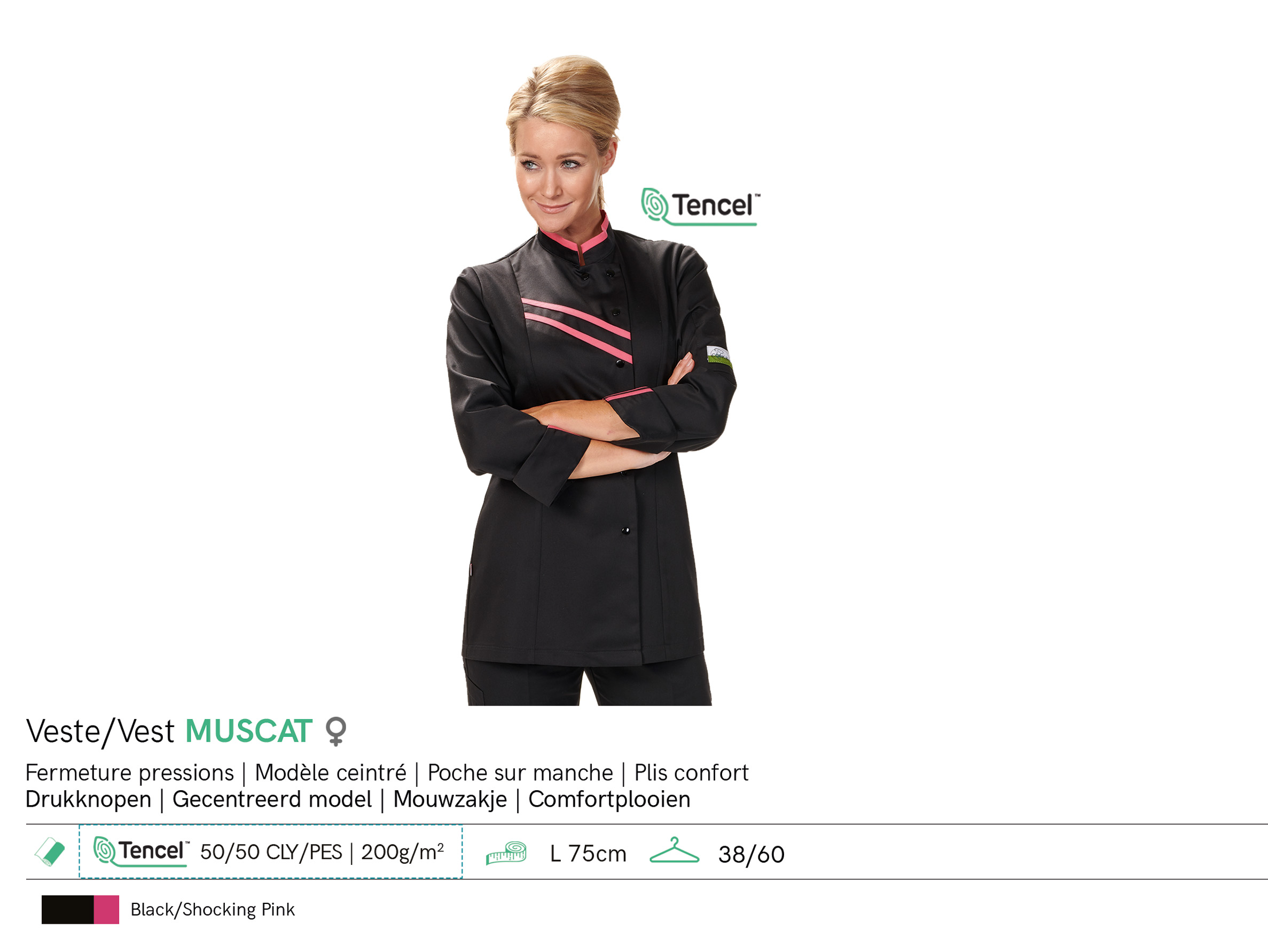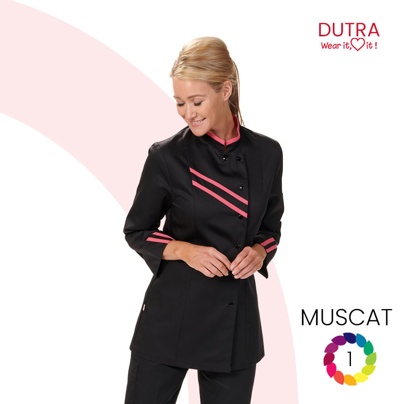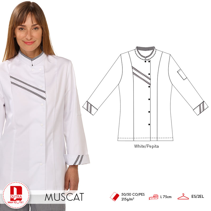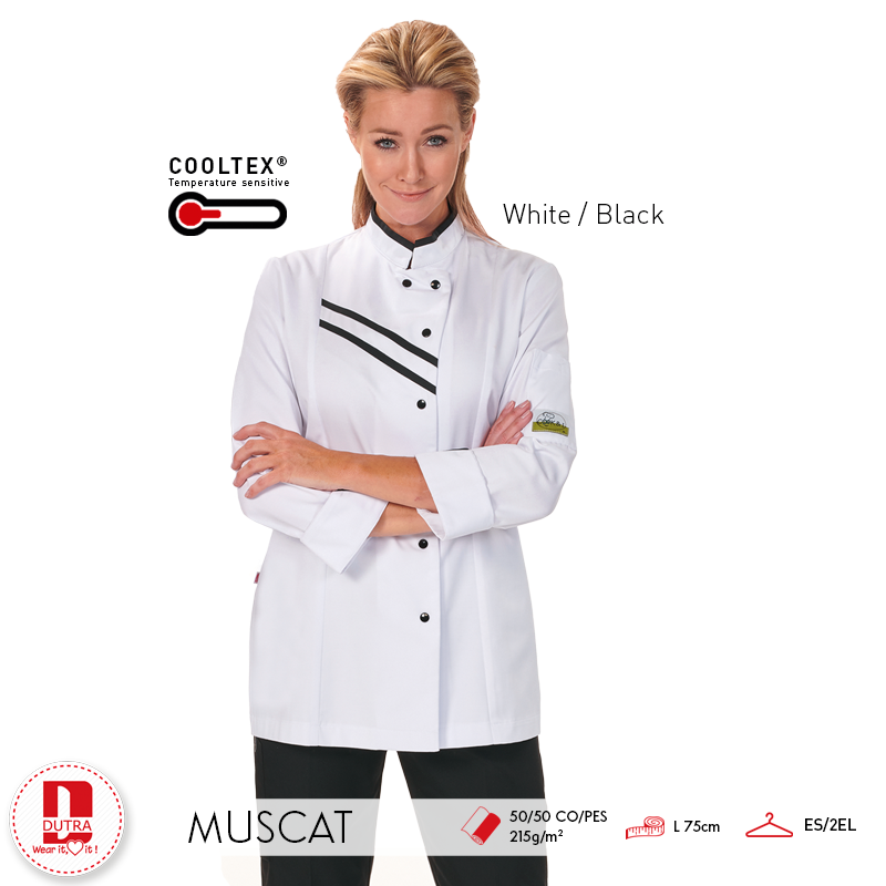 La veste de cuisine pour dame associe élégance et fonctionnalité, répondant aux besoins des professionnelles de la gastronomie. Les manches longues et les garnitures contrastées ajoutent une touche de style.