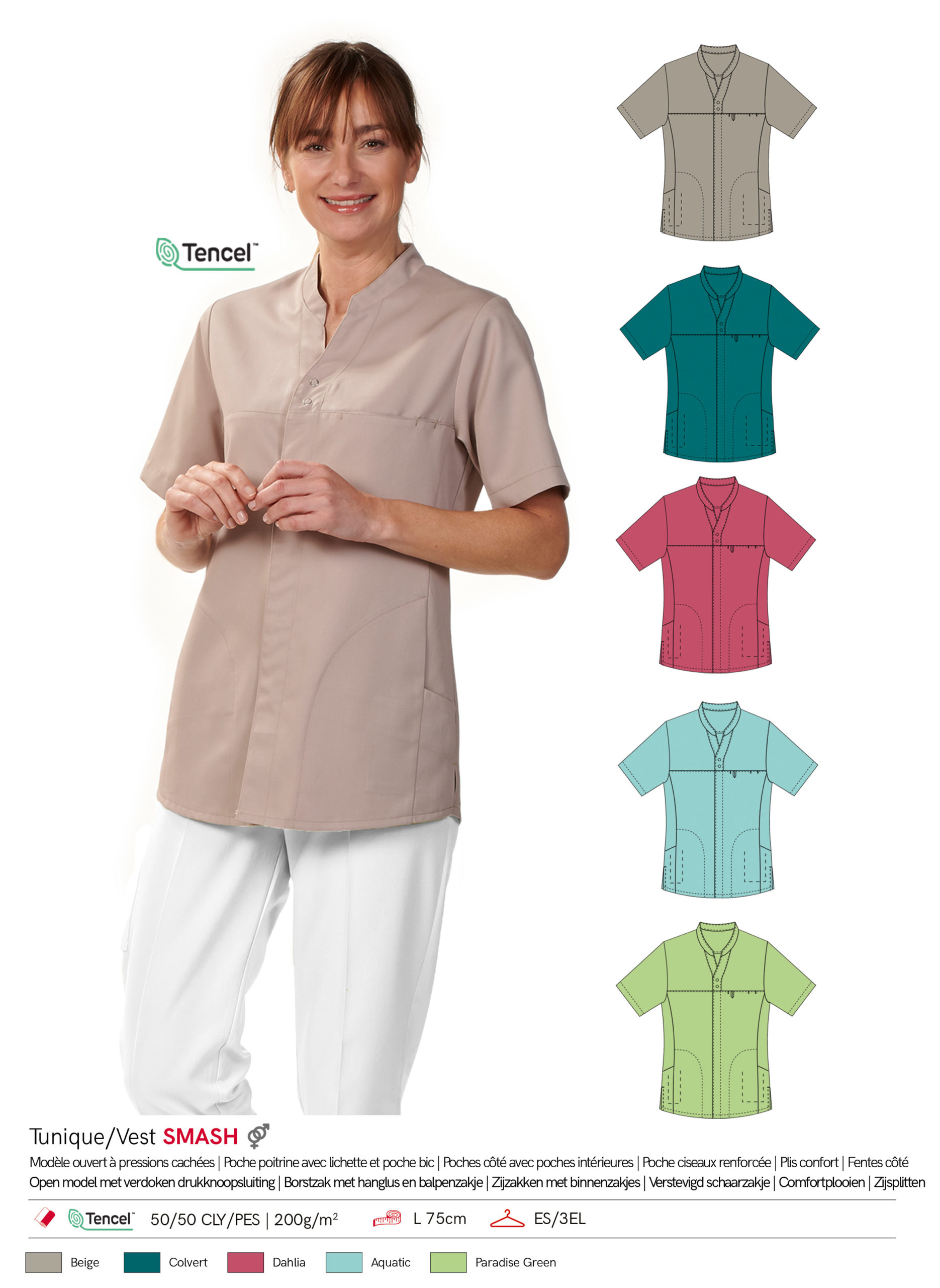 La tunique Smash, un modèle mixte, combine fonctionnalité et style pour répondre aux besoins des professionnels de divers secteurs dont le domaine médical.